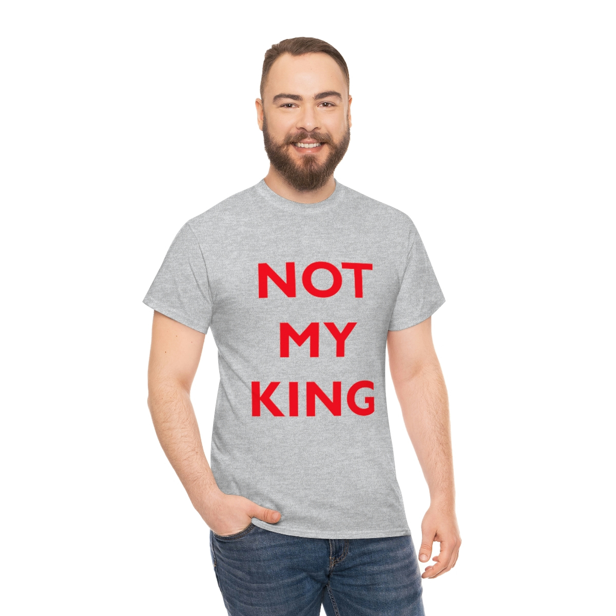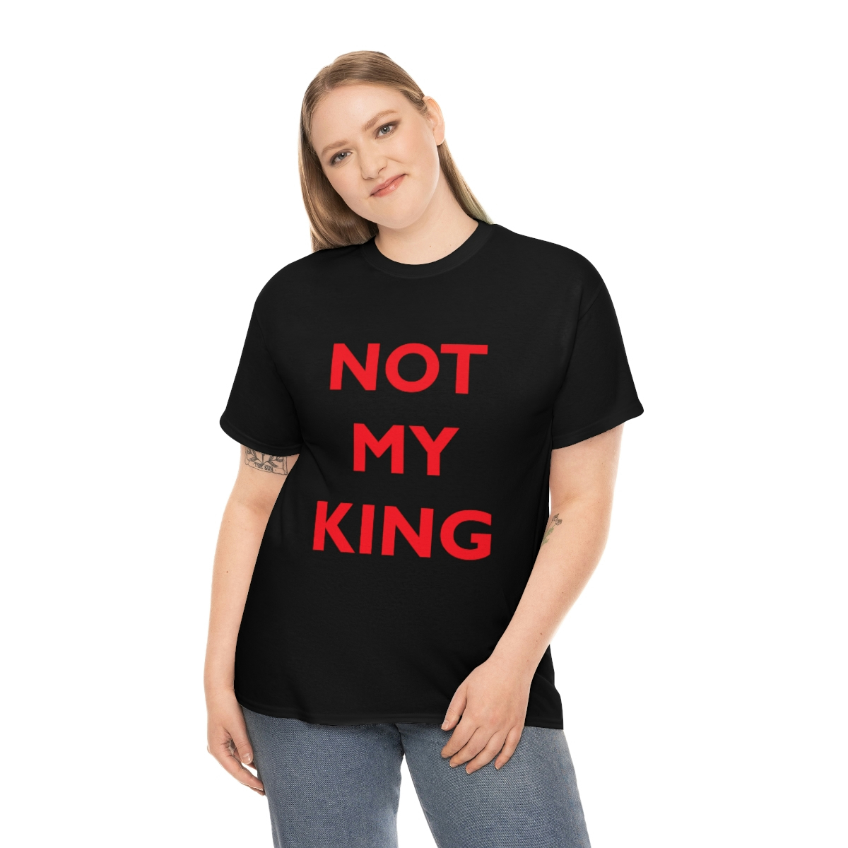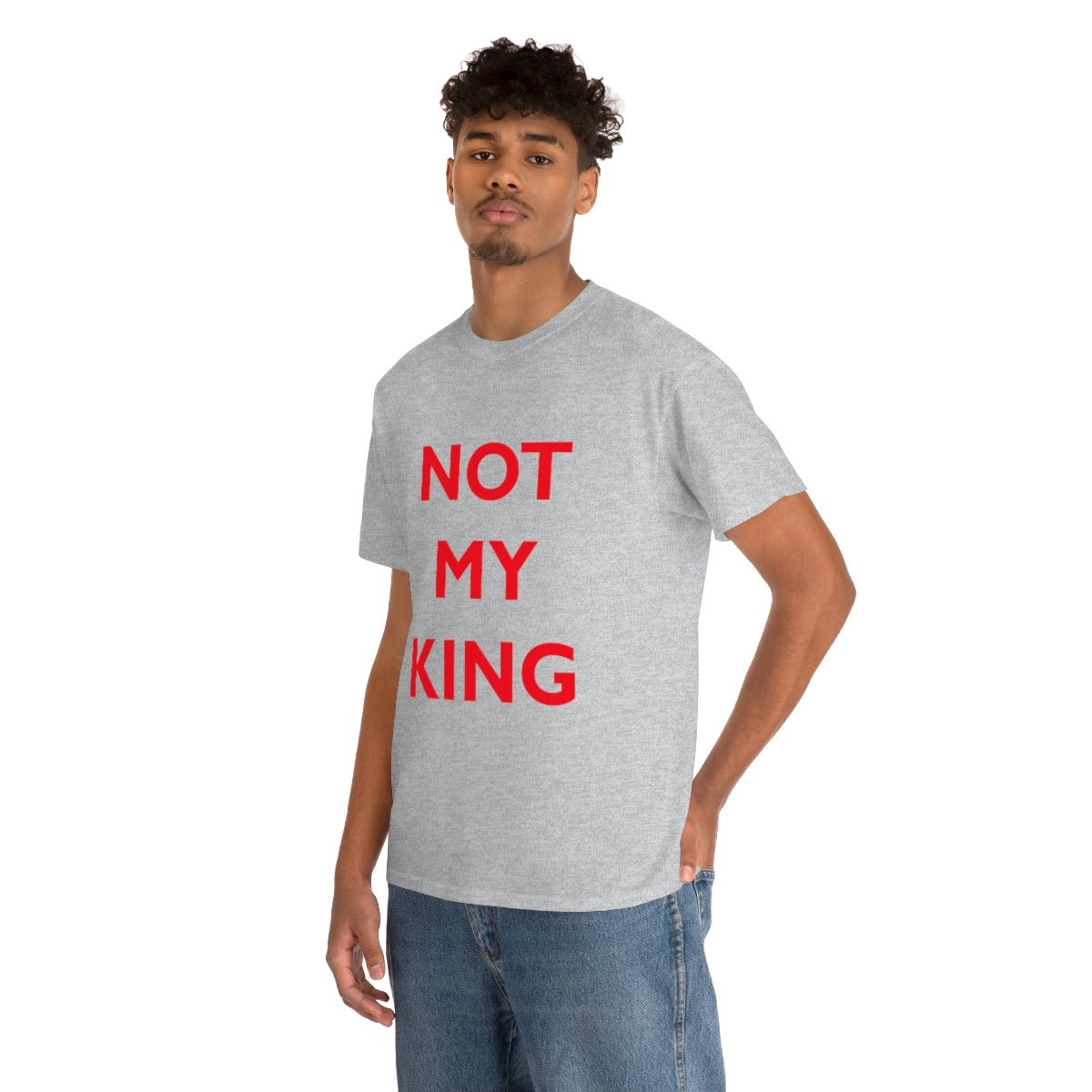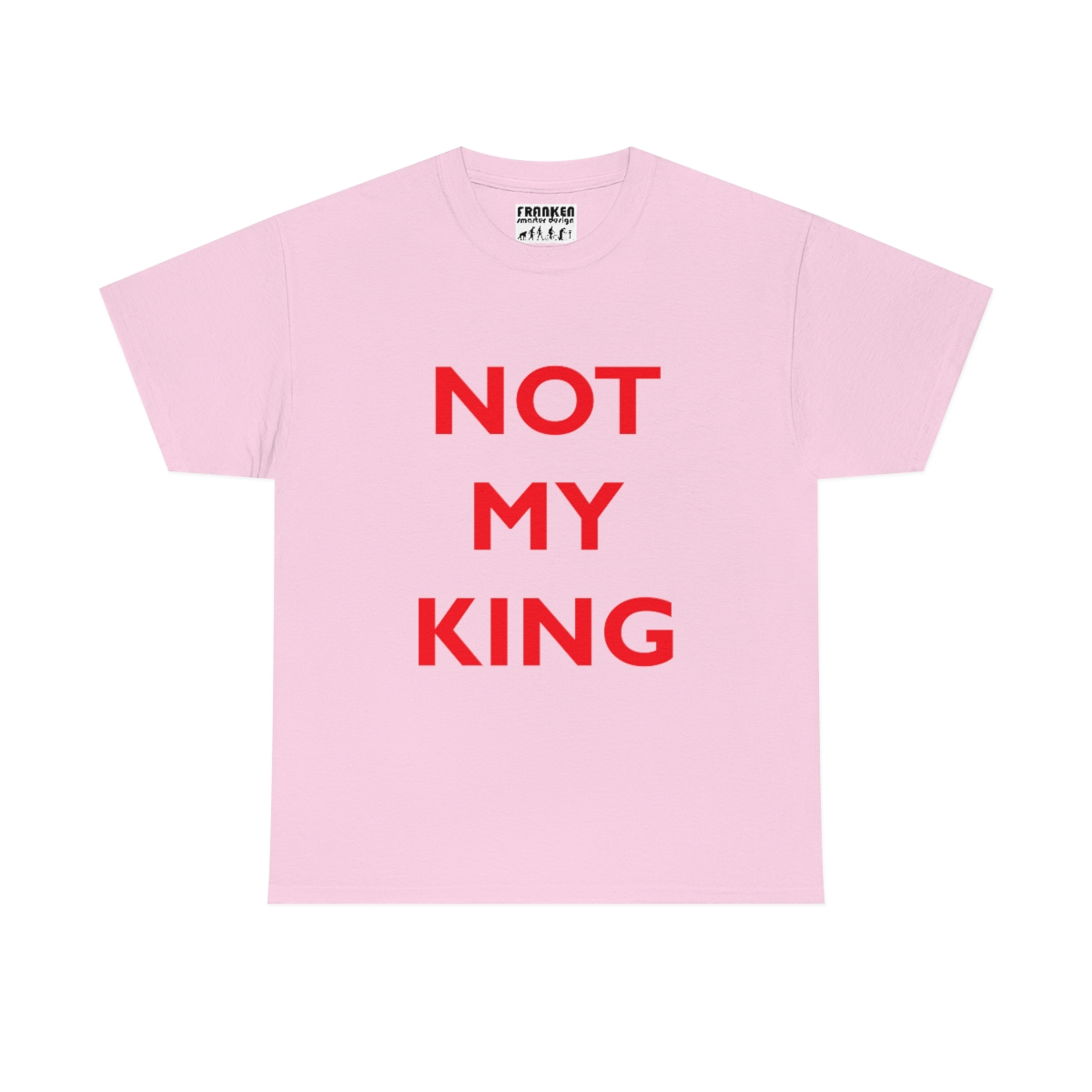 The NOT MY KING heavy cotton tee is the basic staple of any wardrobe. It is the foundation upon which casual fashion grows. No side seams mean there are no itchy interruptions under the arms. The shoulders have tape for improved durability.