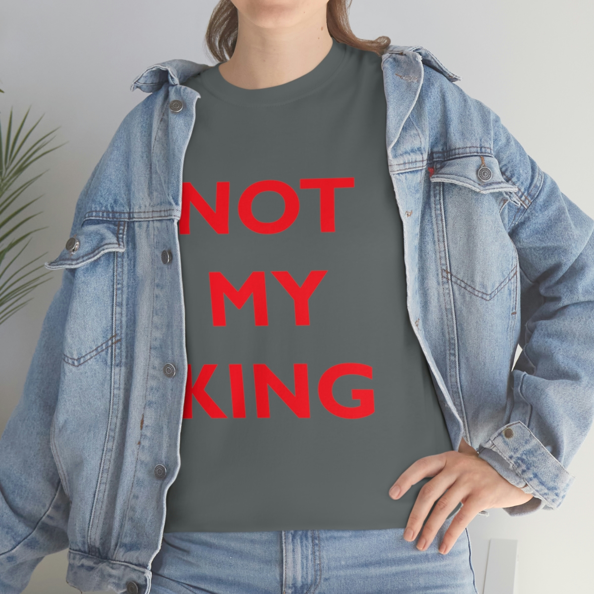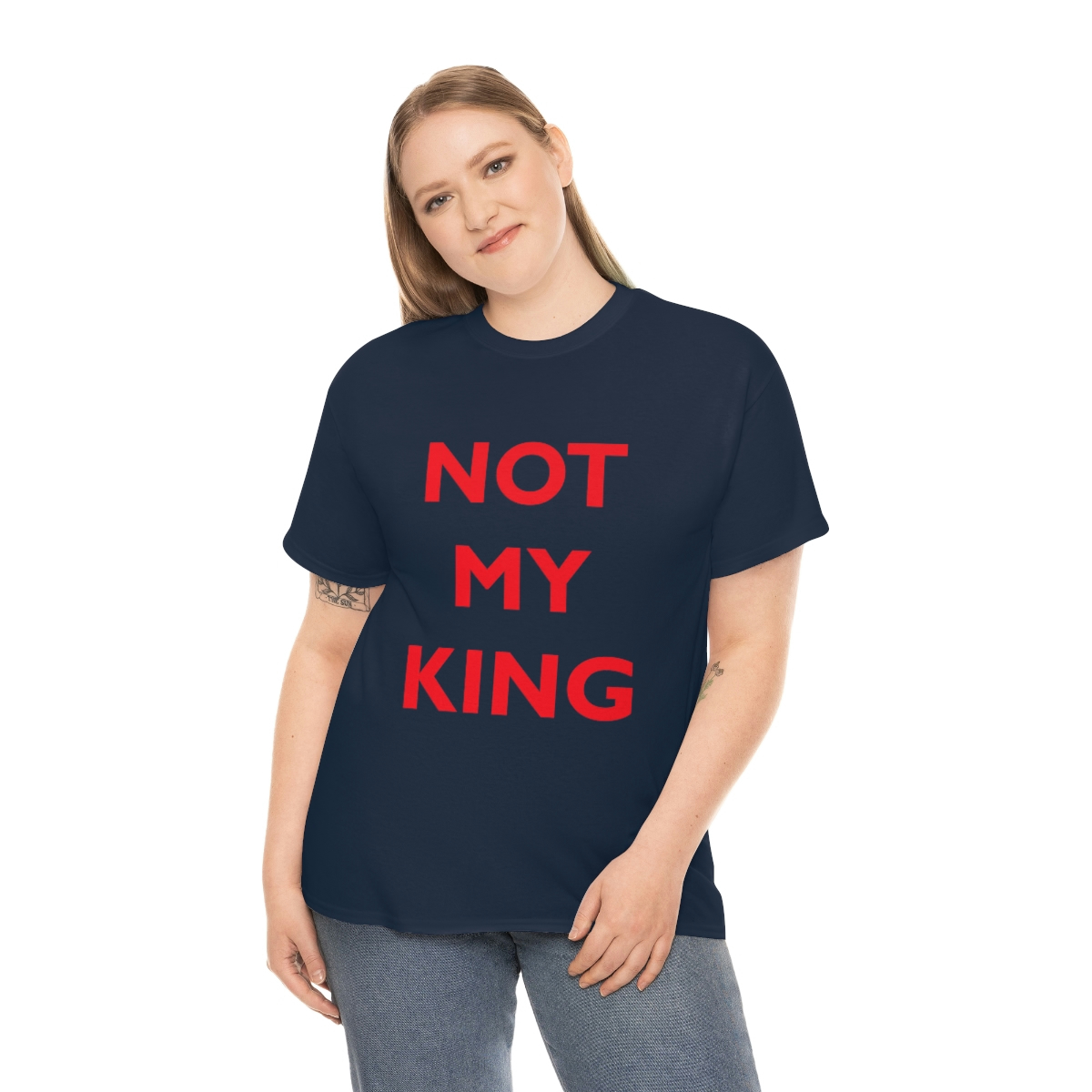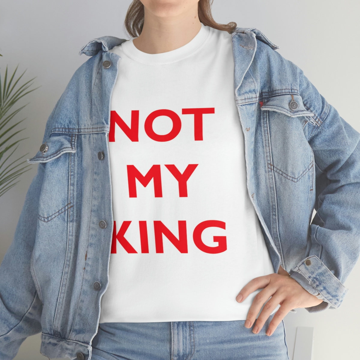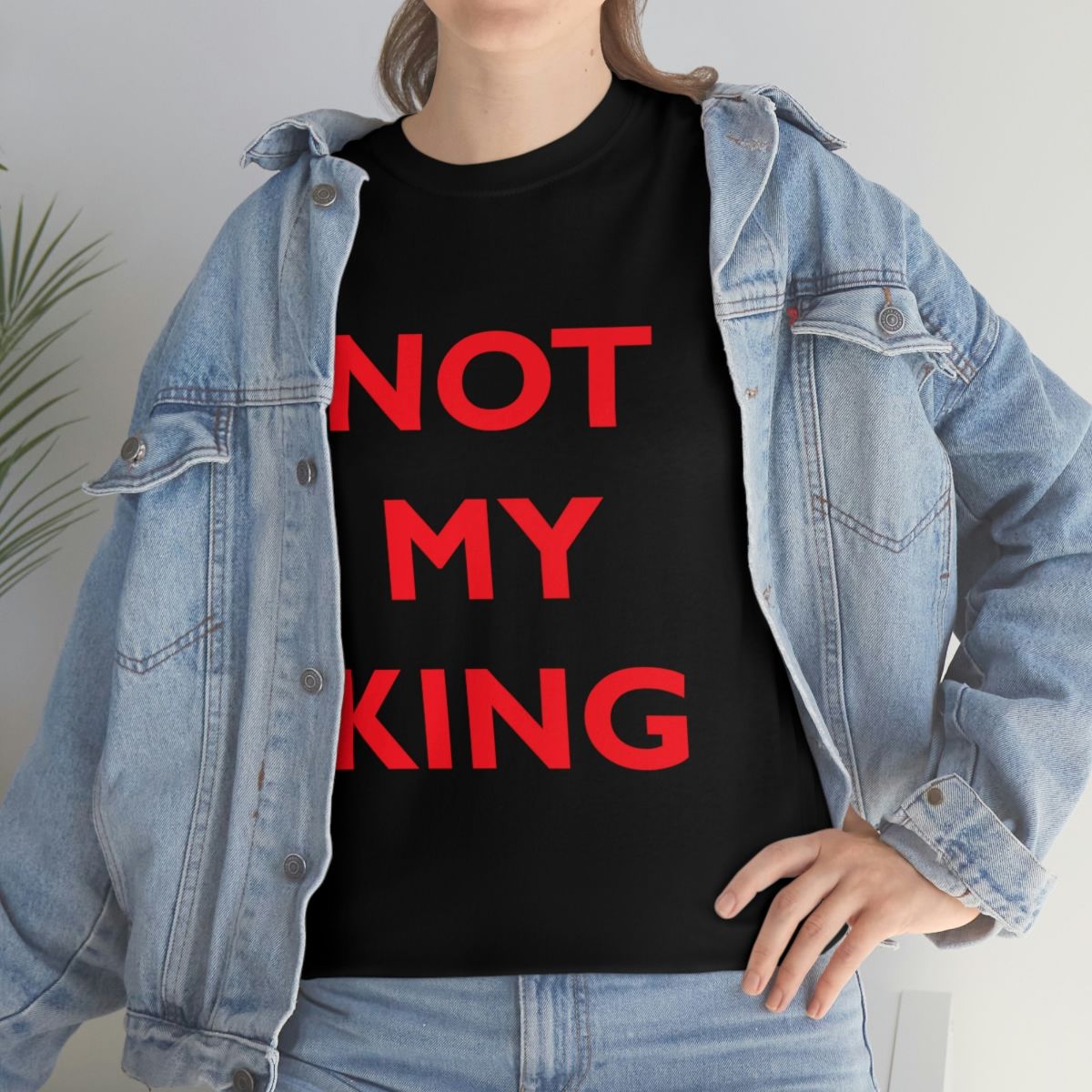 The NOT MY KING heavy cotton tee is the basic staple of any wardrobe. It is the foundation upon which casual fashion grows. No side seams mean there are no itchy interruptions under the arms. The shoulders have tape for improved durability.