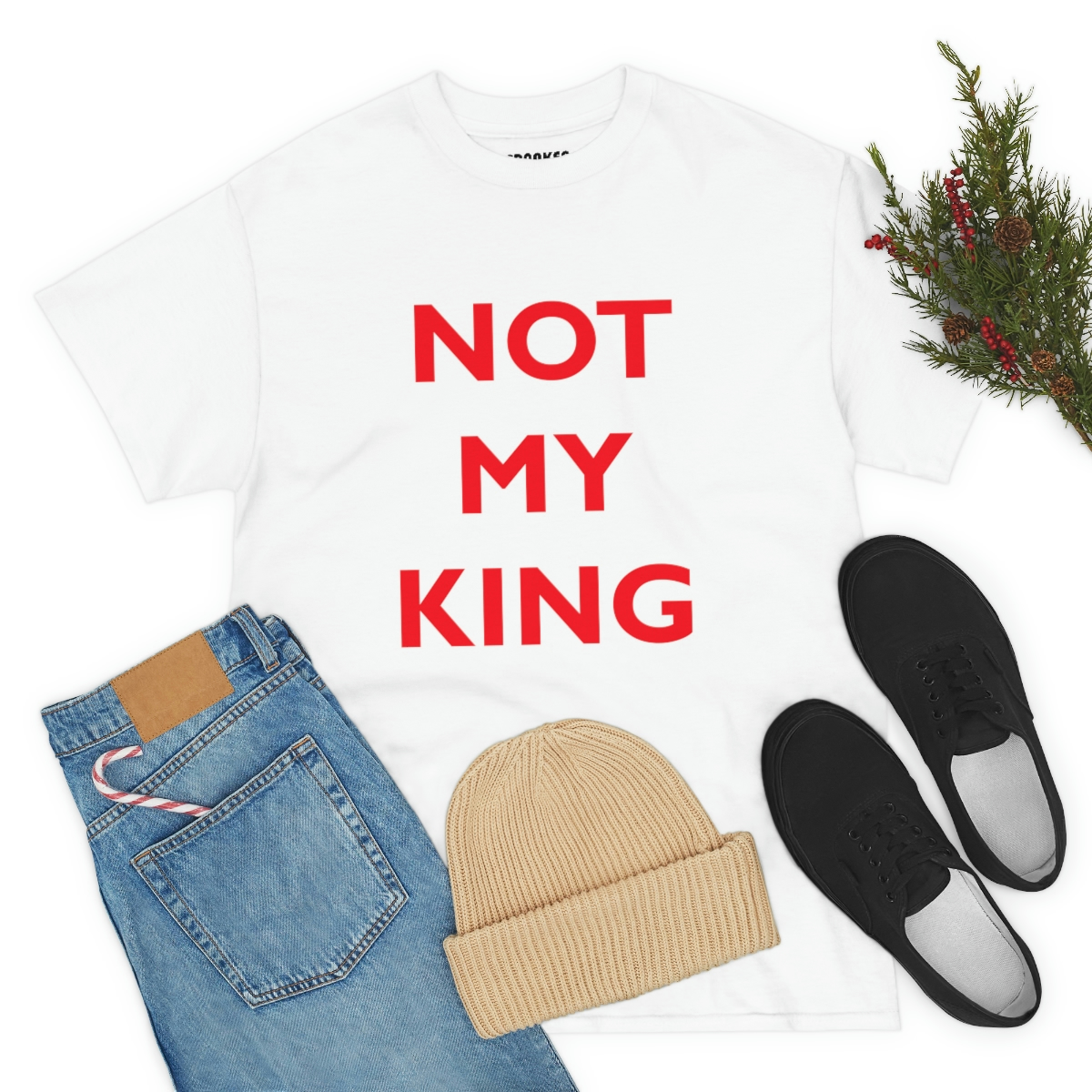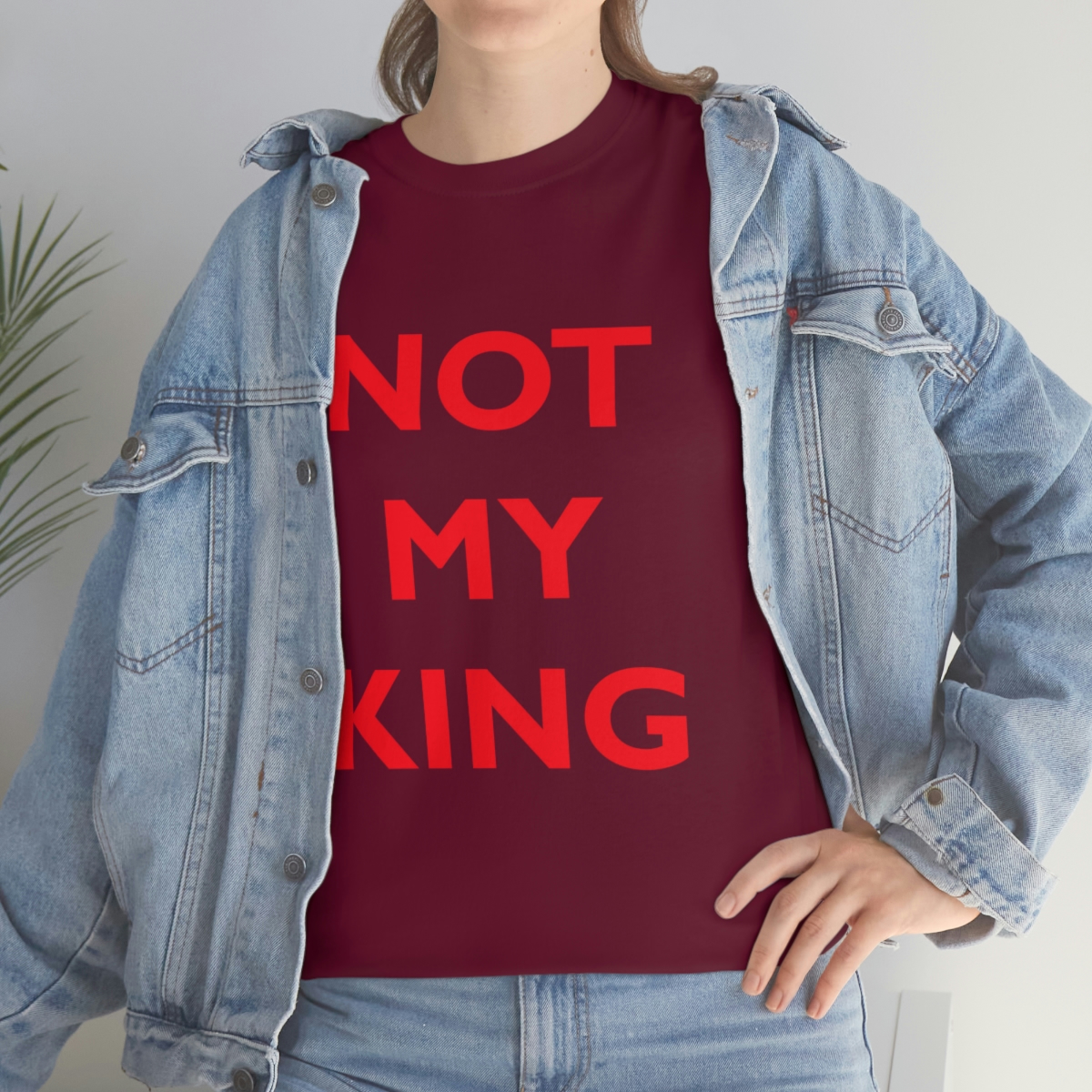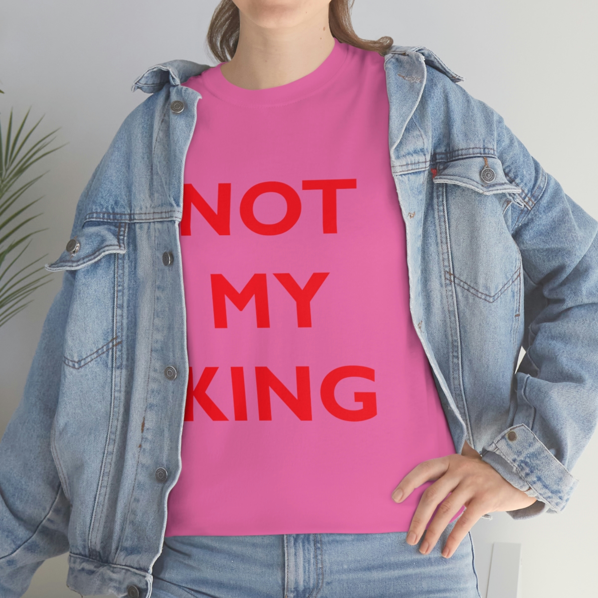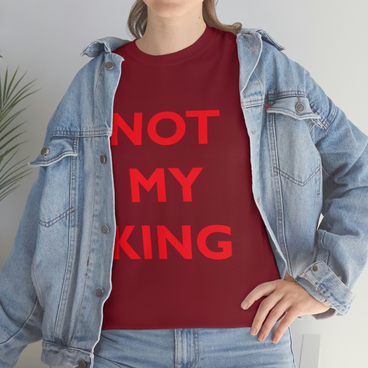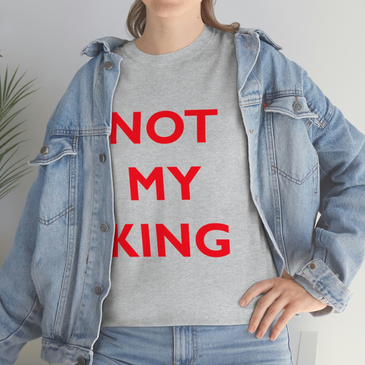 The NOT MY KING heavy cotton tee is the basic staple of any wardrobe. It is the foundation upon which casual fashion grows. No side seams mean there are no itchy interruptions under the arms. The shoulders have tape for improved durability.