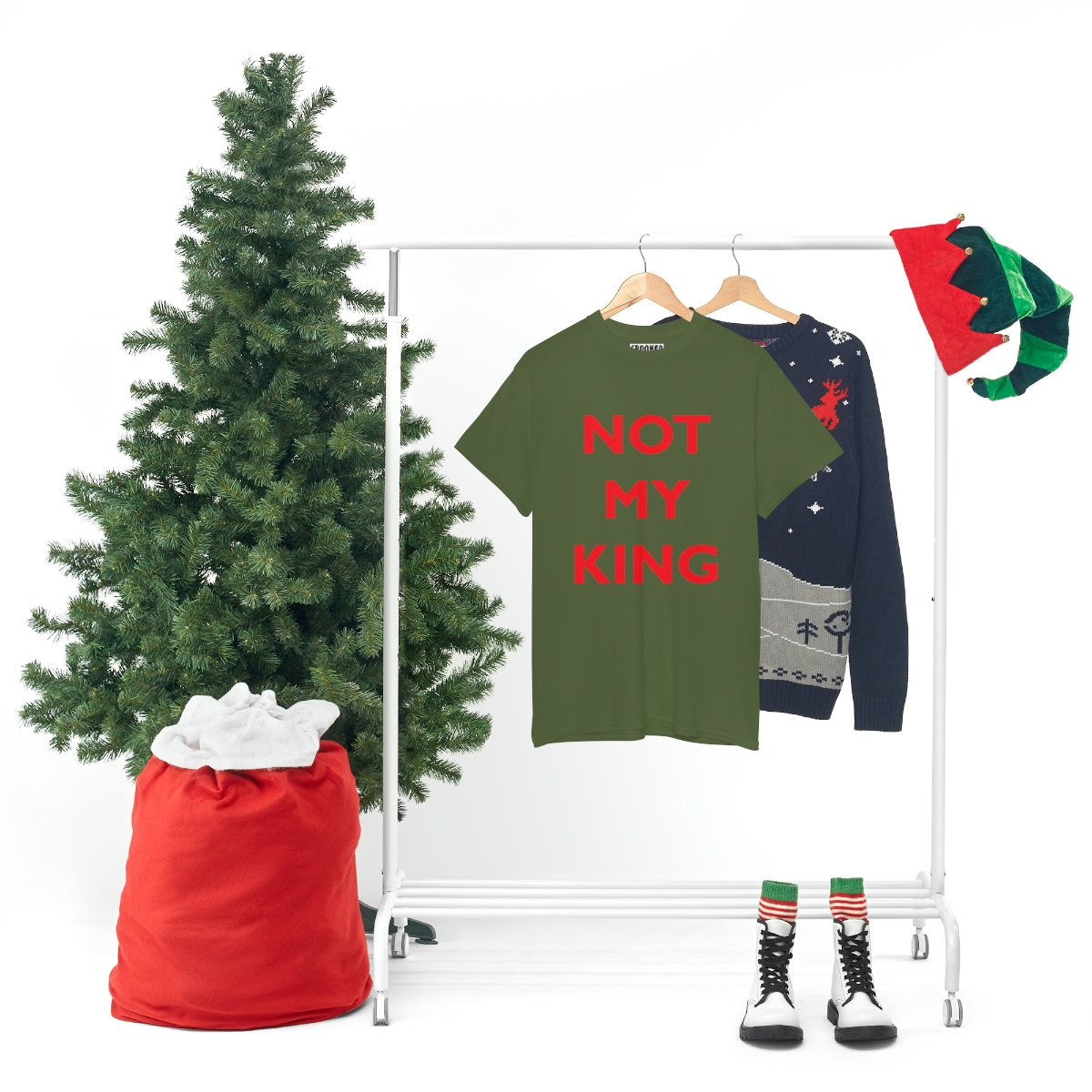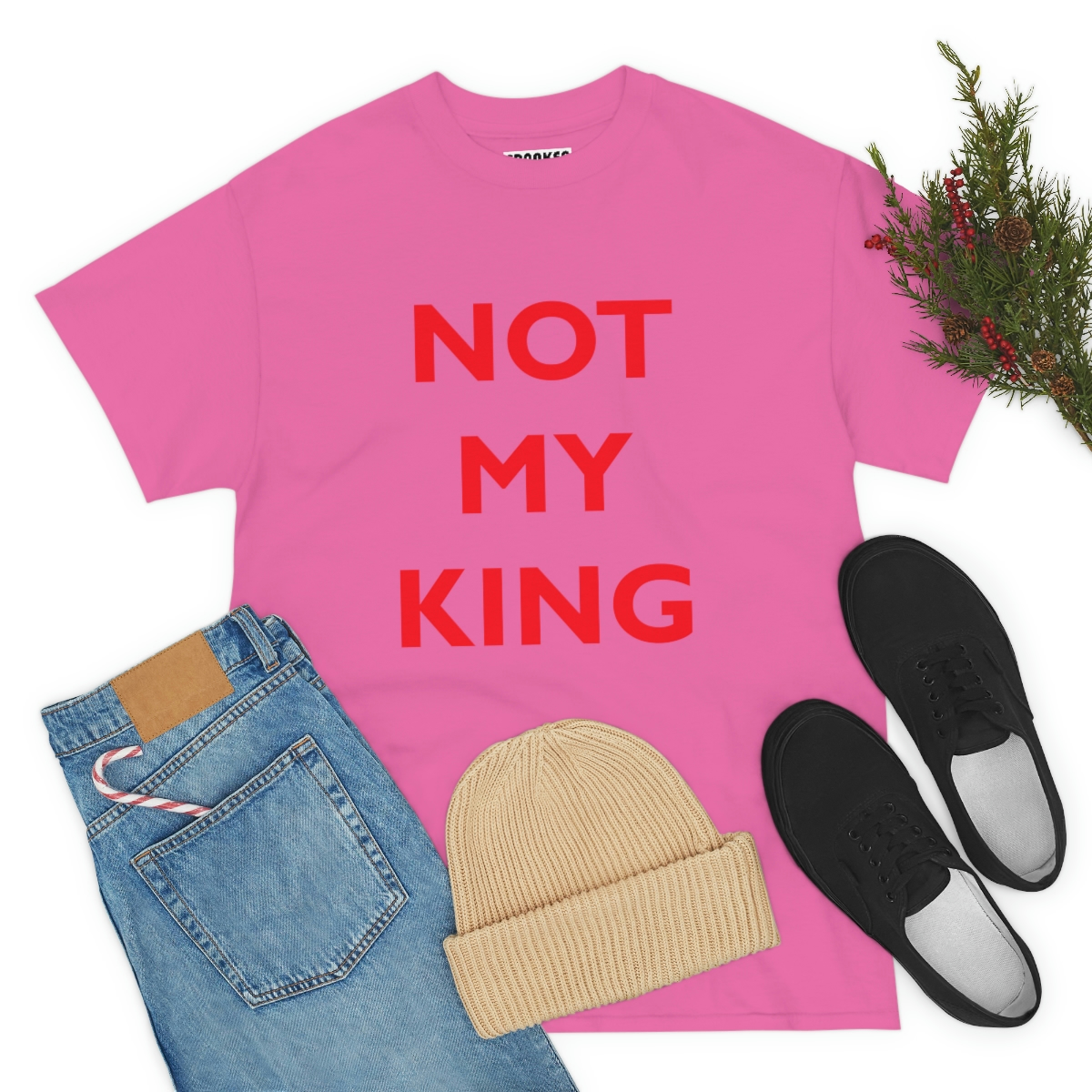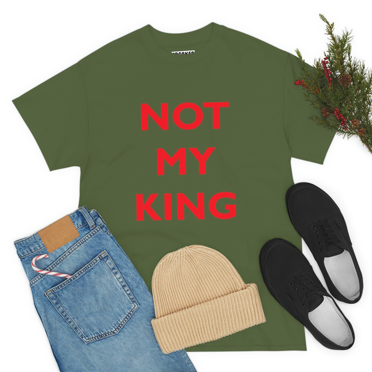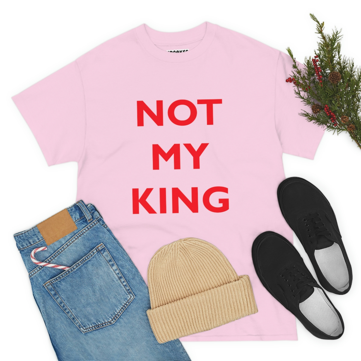 The NOT MY KING heavy cotton tee is the basic staple of any wardrobe. It is the foundation upon which casual fashion grows. No side seams mean there are no itchy interruptions under the arms. The shoulders have tape for improved durability.